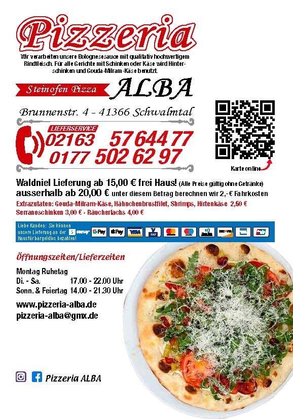 Frische Zutaten und ein guter Pizzabäcker - das schmeckt man, das ist Pizzeria "ALBA". Genießen Sie bei uns ein vielfältige Speisekarte und saisonale Gerichte wie in Italien. Blättern Sie doch mal durch die Speisekarte unten.